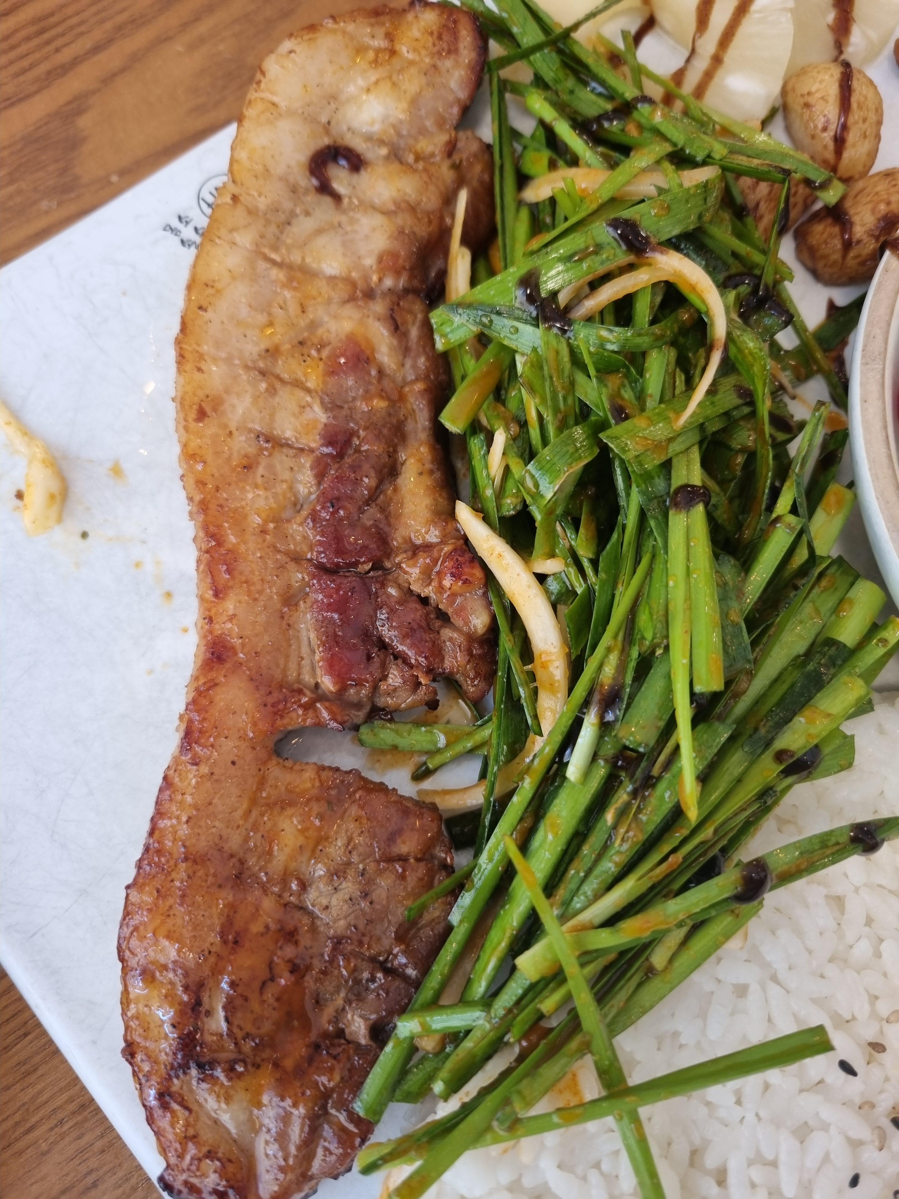 그리고 드디어 부추 통삼겹 스테이크 등장.